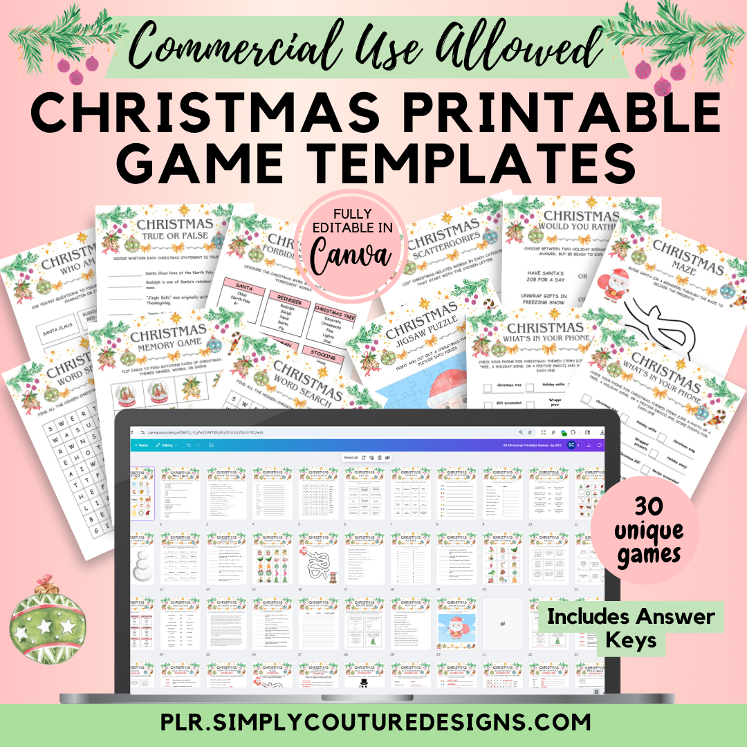 Examples: PLR Google Sheets Spreadsheet, Digital Planner Canva Template, Printable Planner Canva Template, Printable Games Canva Template, Canva Website Template and more!